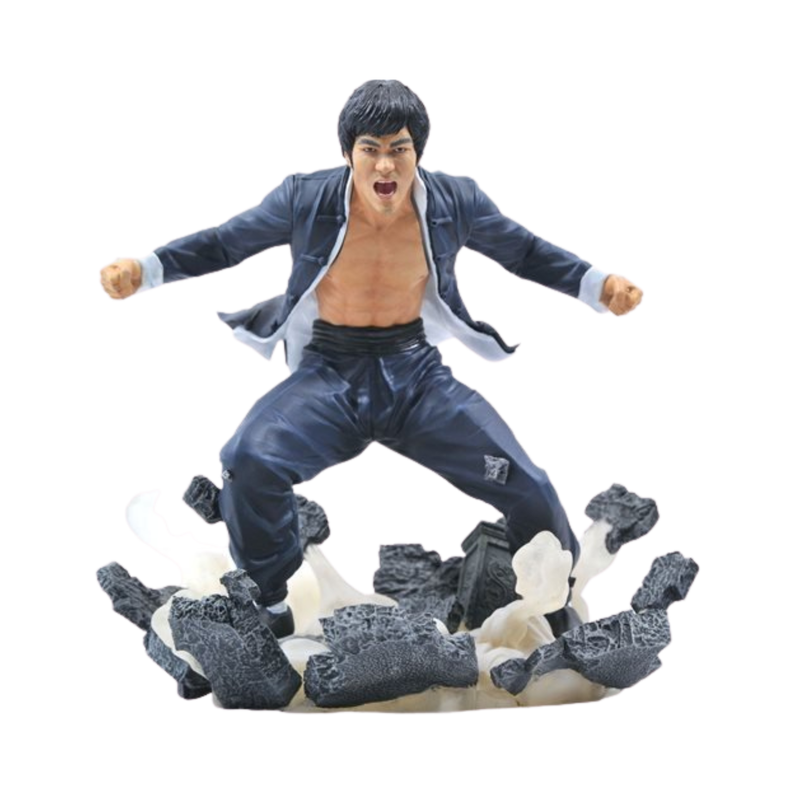 The next entry in the Bruce Lee Gallery Diorama series captures the superstar in action, wearing a blue coat and pants and shattering a stone tablet with one stomp of his feet.