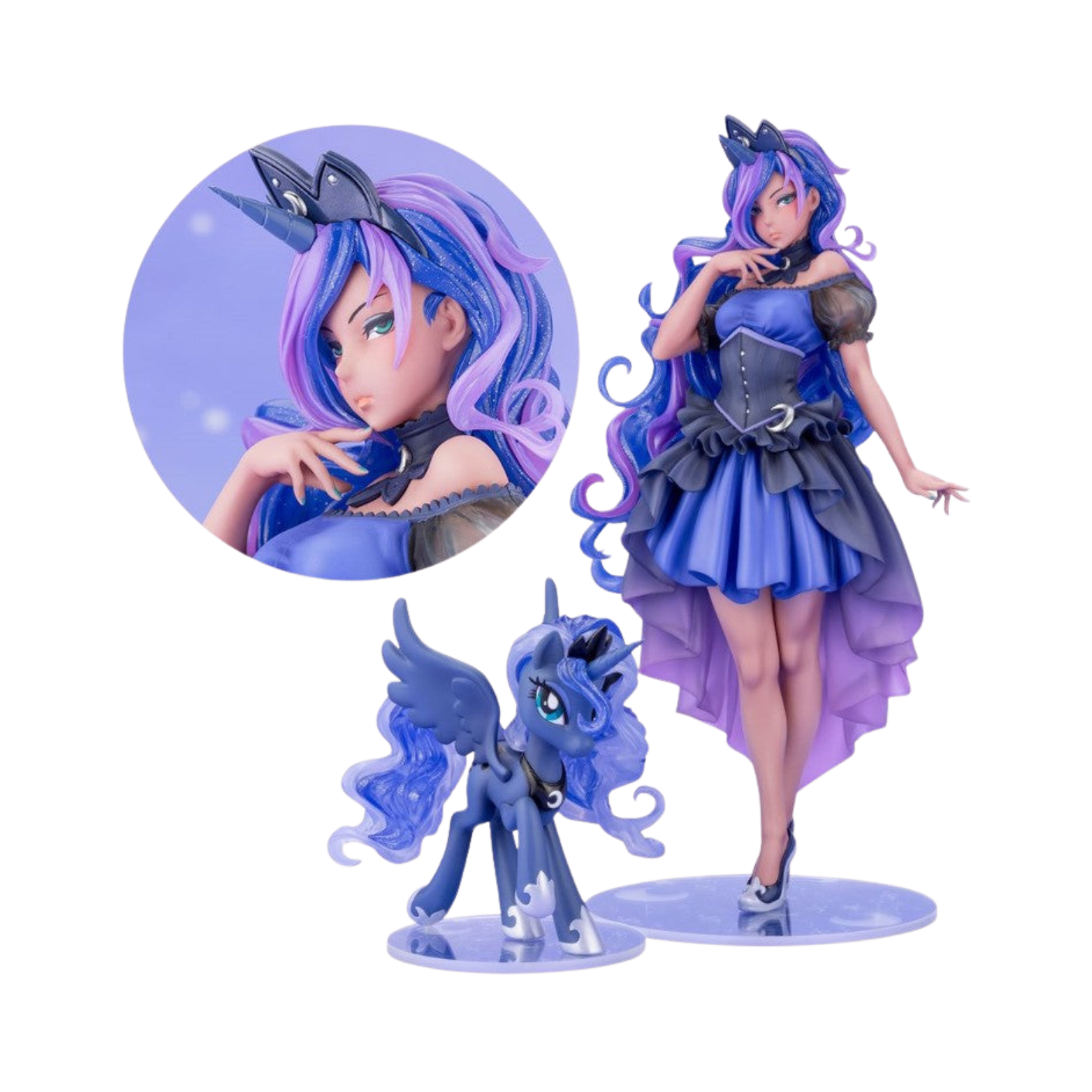 Based on a stylized rendering by Bishoujo illustrator Shunya Yamashita, Kotobukiya presents the My Little Pony Princess Luna Bishoujo Statue! From the gothic dress with a detailed corset, to the princess' facial expression and pose, this statue is inspired by the motif of "night". With sparkles included throughout her luxurious hair, one can imagine a night sky full of twinkling stars. To complete the look, her nail polish even matches the color as her eyes!