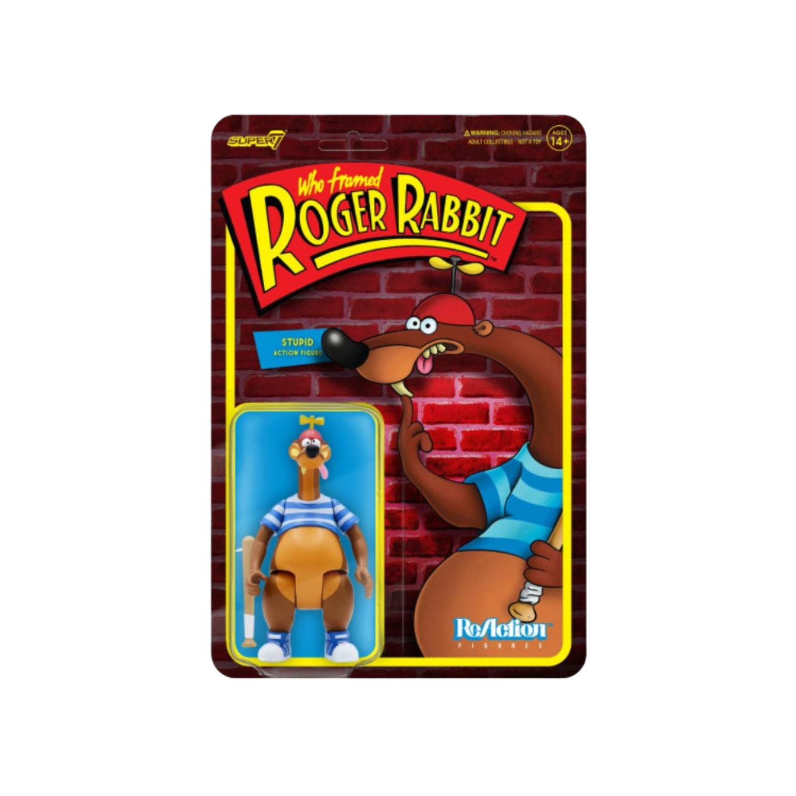 The plastic Who Framed Roger Rabbit? Stupid 3 3/4-Inch ReAction Figure includes a baseball bat and comes packaged on a retro 6x9-inch cardback, just like your favorite action figures from the 1970s and 1980s.